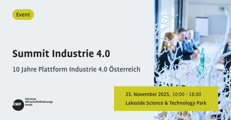 Die Plattform Industrie 4.0 feiert heuer ihr 10-jähriges Bestehen – und das mit einem hochkarätig besetzten Jubiläums-Summit am 25. November 2025 im Lakeside Science & Technology Park in Klagenfurt
